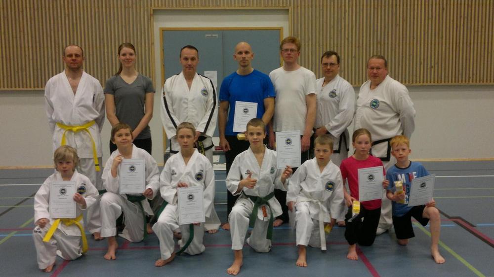 Kaikki suorittivat kokeen hyväksytysti ja saivat uusien vyöarvojen myötä diplomit.