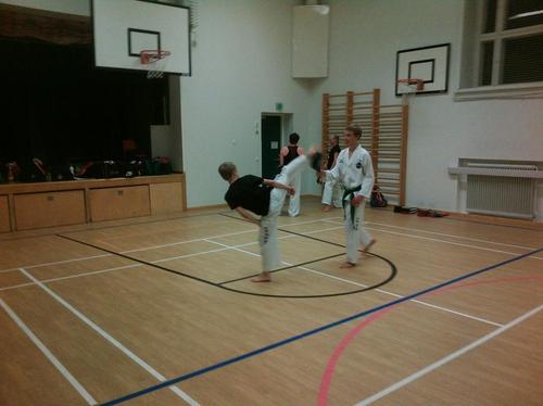 klo 12.00 oli Sonkal Veikkolan näytös, jossa esiteltiin taekwon-doa yleisölle, jota oli taas kerran salin täydeltä.