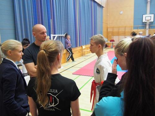 Kokeen komentajina toimivat Sonkalin oppilaille boosabum Jussi Somero, 3 dan,