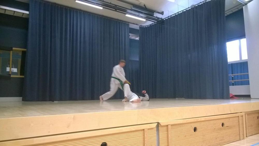 Leirillä käytiin läpi liikesarjojen yksittäistekniikoita, joukkueliikesarjoja ja näytösottelun perusteita.