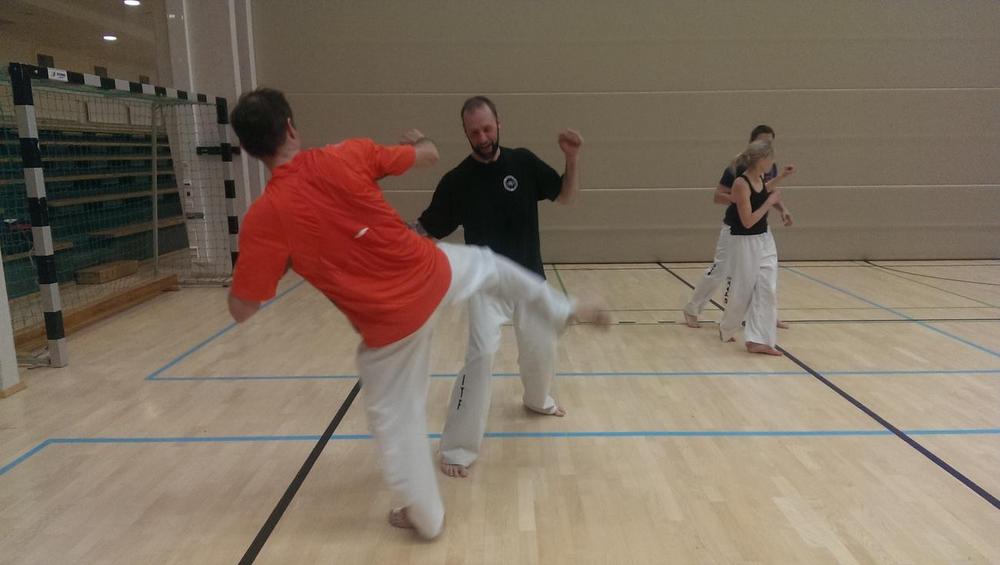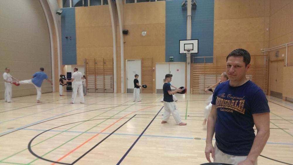 Mestari Thierry Meyour, 7 dan, piti ensimmäisen tekniikkaharjoituksen Sonkal Veikkolan ja muidenkin seurojen jäsenille. Harjoitus pidettiin Gesterbyn ruotsinkielisen koulun liikuntasalissa kesän ensimmäisenä hellepäivänä.