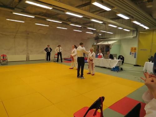 Sitten tuomarikurssilaiset pääsivät testaamaan uusia taitojaan lauantaina 31.10.2015 järjestetyssä juniori- ja liikesarjakilpailuissa Veikkolan koulun liikuntasalissa.